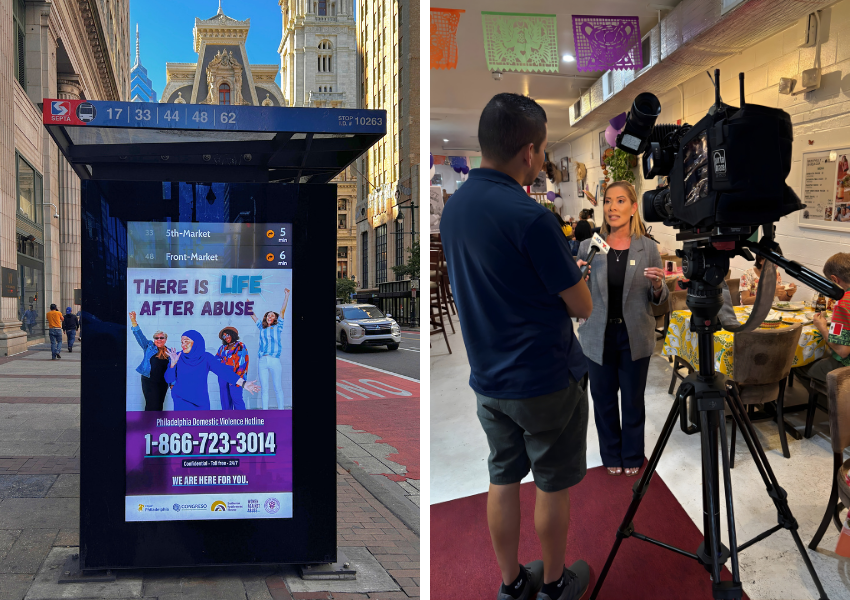 Trabajamos en colaboración cercana con Congreso de Latinos Unidos, Lutheran Settlement House y Women In Transition para operar la Línea Directa de Violencia Doméstica de Filadelfia, disponible las 24 horas. Este año, también colaboramos para promocionar la línea directa en comunidades desatendidas, distribuyendo tarjetas de la línea directa, desarrollando anuncios de publicidad institucional creativos, aprovechando los anuncios gratuitos en paradas de autobús y escribiendo una columna mensual sobre las relaciones saludables para Impacto Media.
